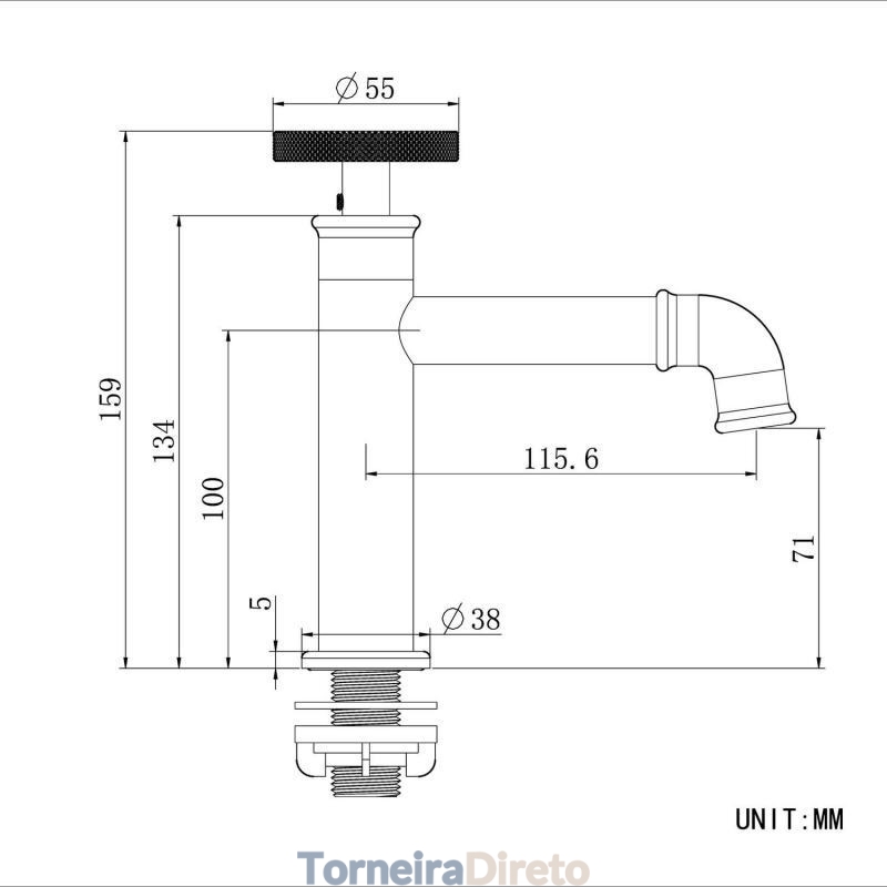 | Altura do bico | 2,8'' (71 mm) |