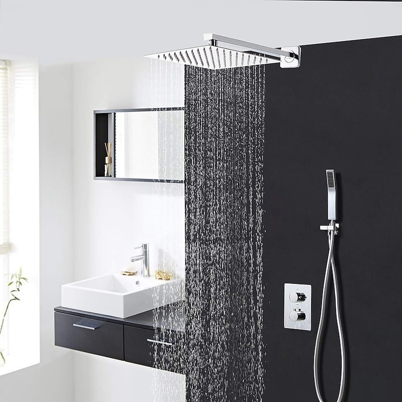 Estilo:Contemporâneo,Características:Chuveiro de chuva,Chuveiro de mão incluído,Tipo de torneira:Torneira de chuveiro,Válvula misturadora termostática,Tipo de instalação:Montagem interna,Número de alças:Duas alças,Taxa de fluxo (L/min):4,4 gal/min,Interruptor de frio e quente:Sim,Tipo de válvula:Válvula de latão,Acabamento:Cromado,Orifícios e alças de instalação:Duas alças, dois furos,