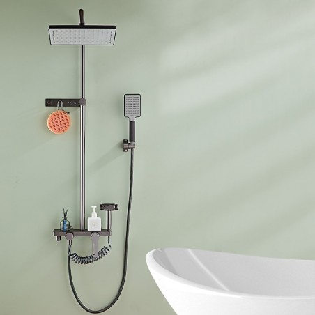 Estilo:Contemporâneo,Características:Chuveiro Multi Spray,Chuveiro de Chuva,Puxador,Chuveiro de Mão Incluído,Cascata,Tipo de torneira:Sistema de chuveiro,Chuveiro duplo de alta pressão premium,Massagem Body Jet,Sistema de chuveiro de chuva,Tipo de instalação:Montagem interna,Número de alças:Alça única,Interruptor de frio e quente:Sim,Tipo de válvula:Válvula de cerâmica,Acabamento:Cromado,Orifícios e alças de instalação:Alça única com três furos,Pressão da água (Mpa):0,5-1,