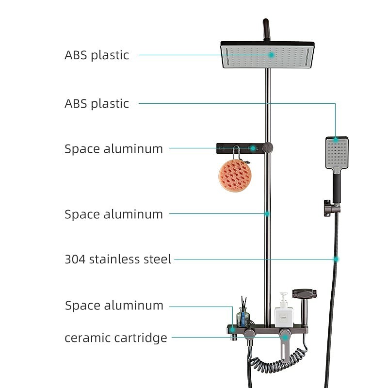 Material da alça:Alumínio,Material do chuveiro de mão:Plástico ABS de grau A,Material do corpo da torneira:alumínio,