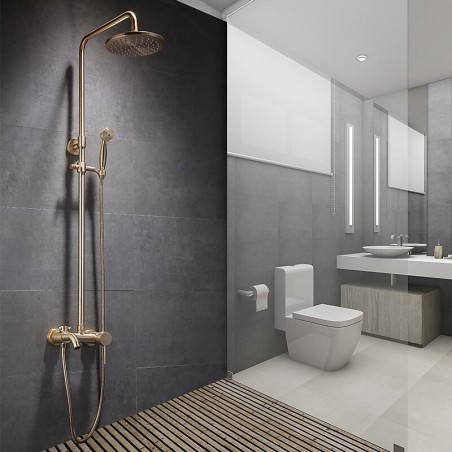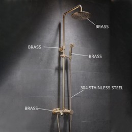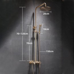 Estilo:Tradicional,Antigo,Características:Chuveiro tipo chuva,retirável,Dupla cabeça,Chuveiro de mão incluso,Tipo de torneira:Body Jet Massage,Sistema de chuveiro de chuva,Sistema de chuveiro,Tipo de instalação:Montagem interna,Número de alças:Alça única,Interruptor de frio e quente:Sim,Tipo de válvula:Válvula de latão,Acabamento:Galvanizado,Orifícios e alças de instalação:Alça única, um furo,Pressão da água (Mpa):0,5-1,
