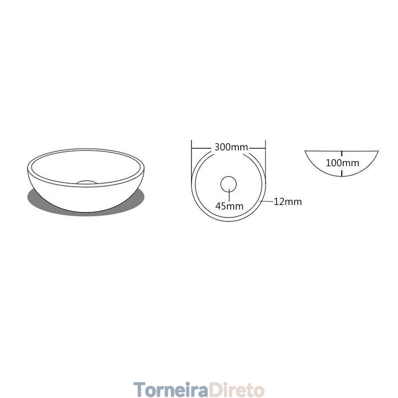 | Medição da pia/bacia | D300*H100*T12mm |