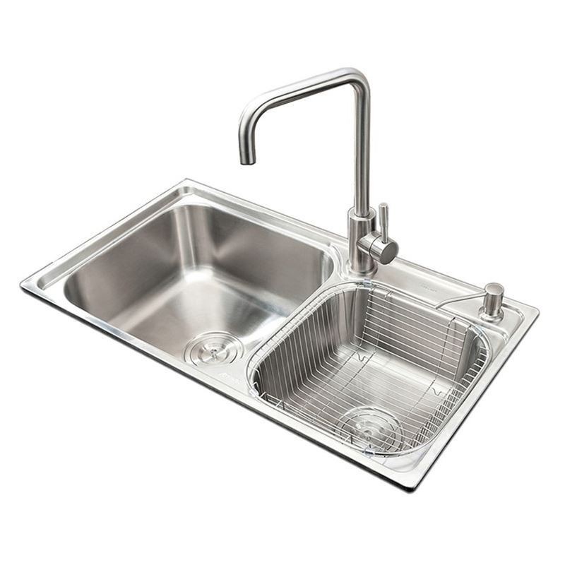 | Lista de acessórios | Pia, escorredor de resíduos de aço inoxidável, cesto de drenagem, dispensador de sabão, suporte |