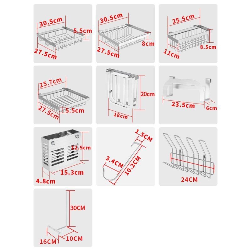 | Lista de acessórios | Escorredor de pratos, escorredor de tigelas, escorredor de facas, escorredor de tábuas de corte, escorredor de detergente, escorredor de pauzinhos, escorredor de copos, escorredor de lenços, 5 ganchos |